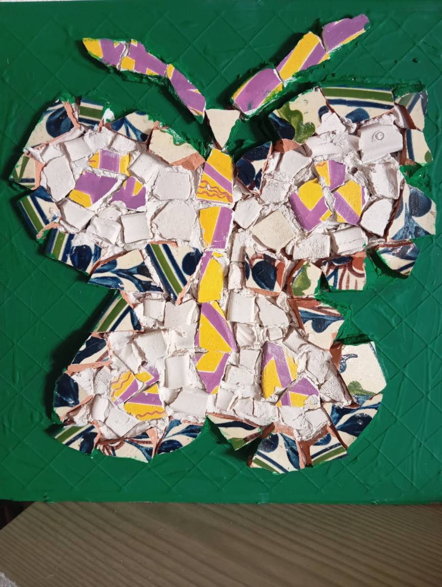 Ne jetez plus votre vaisselle cassée ! Un joli papilon est né grâce à des éclats de céramique. C'est une réalisation de Olivier, mais toute personne intéressée sera accueillie avec plaisir.